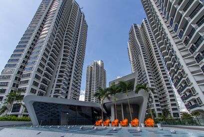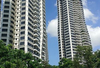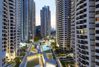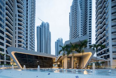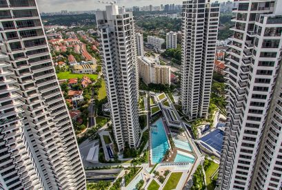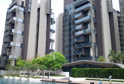 Die sieben 36-stöckigen Türme des Projekts erheben sich majestätisch über die umliegenden erstklassigen Bungalows und niedrigen Eigentumswohnungen und bieten einen ungehinderten Blick auf die Skyline von Singapur sowie atemberaubende Ausblicke auf große Grünflächen wie den Botanischen Garten und das Naturschutzgebiet Bukit Timah.